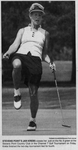 Jan Krebs was a WWSGA rockstar, and did well in other tournaments too. She tied for 4th for the Channel 7 Golf Tournament in 2003 and won the Channel 7 Golf Invitational Tournament in 2005. All photos courtesy of the Stevens Point Journal and newspapers.com